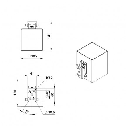 Прожектор крепится на поверхность с помощью стального поворотного кронштейна с возможностью регулировки угла наклона на ±5°.