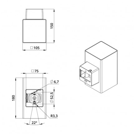 Экструдированный корпус из анодированного алюминия в квадратном форм-факторе. Покрытие — порошковая краска, защищающая корпус от агрессивного внешнего воздействия.