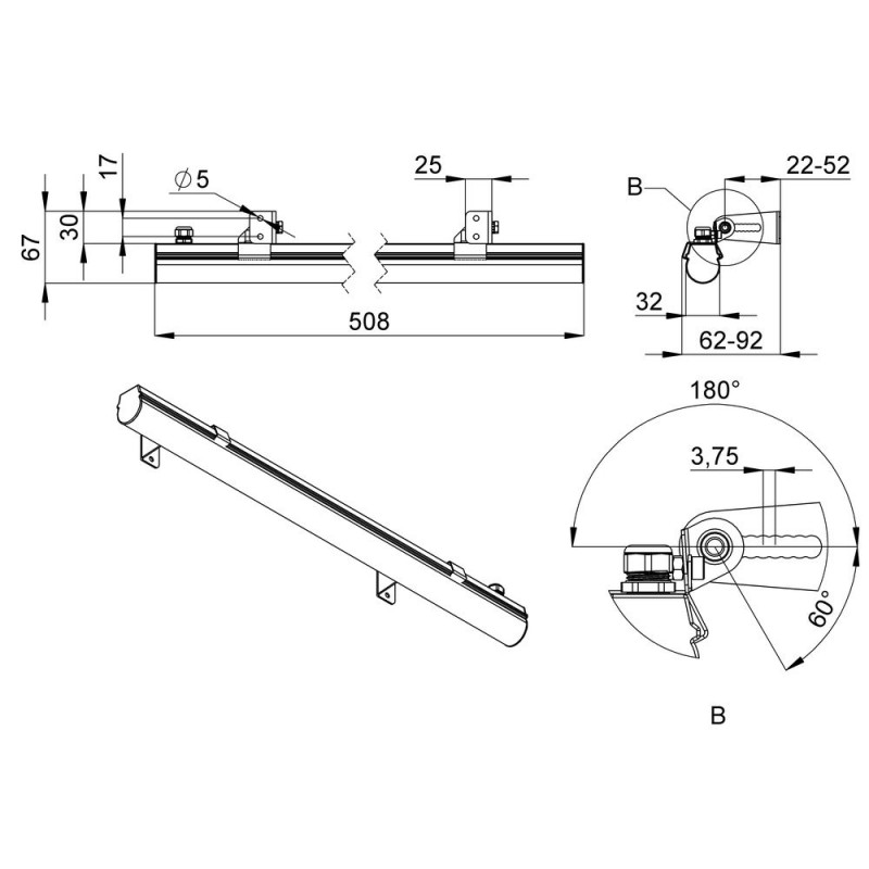 Светильники «Модерн v2.0 24В DC» без монтажного профиля устанавливаются на кронштейн с широким углом регулировки.