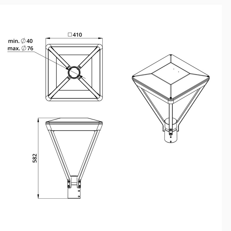 Светильник крепится на вертикальную опору. Стандартный диаметр посадочного отверстия – 78 мм. В комплекте идут крепежные болты.