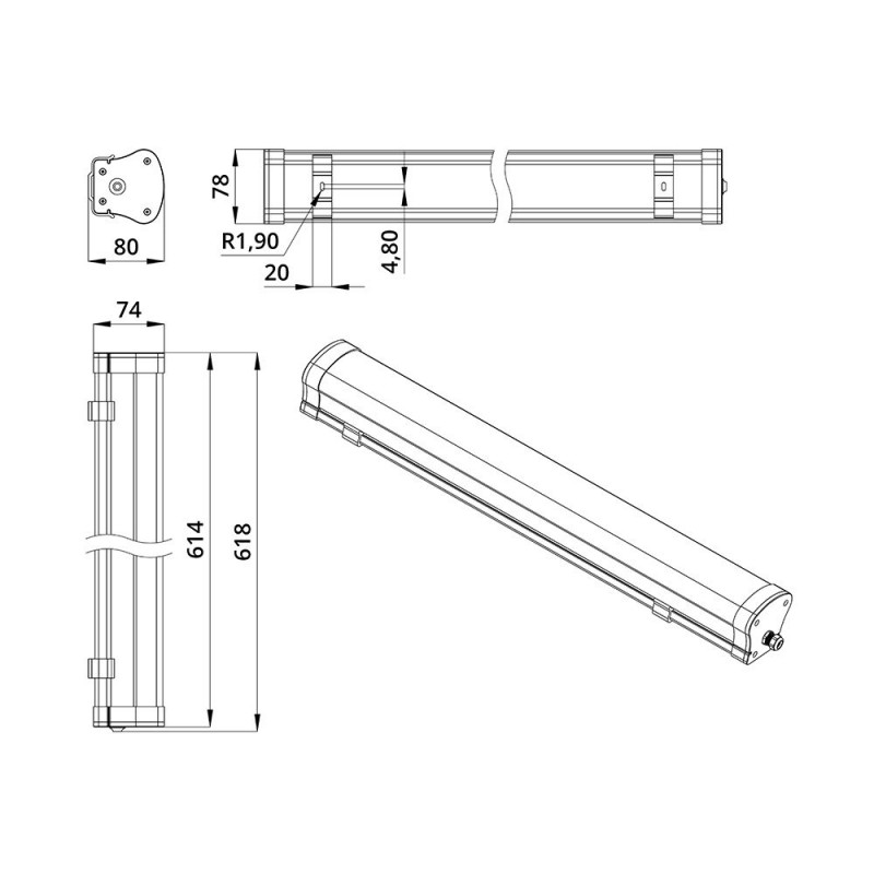 Компактный экструдированный корпус из поликарбоната обеспечивает герметичность (высокую степень защиты от влаги и пыли), лёгкость и удобный монтаж. Корпус устойчив к УФ-излучению.