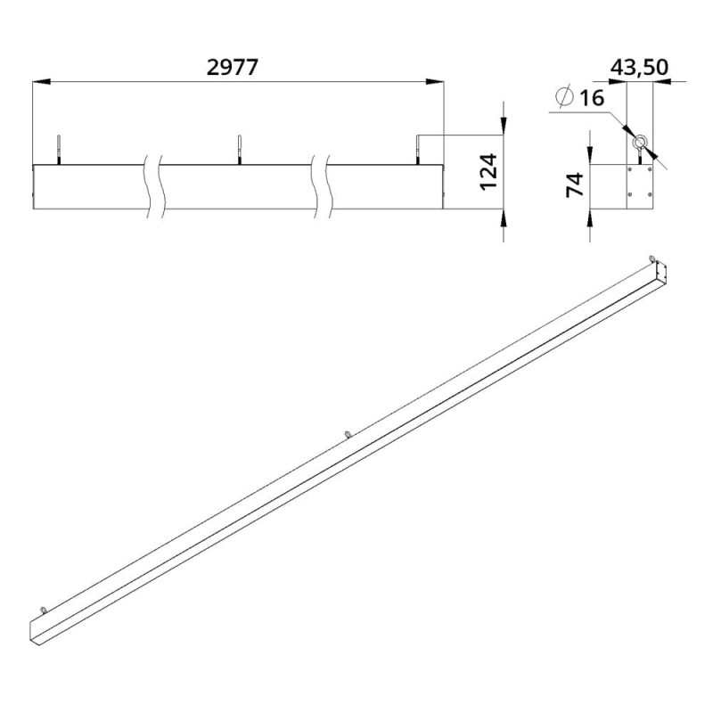 К потолку светильники крепятся на трос (опционально с регулировкой высоты подвеса).