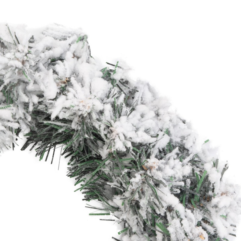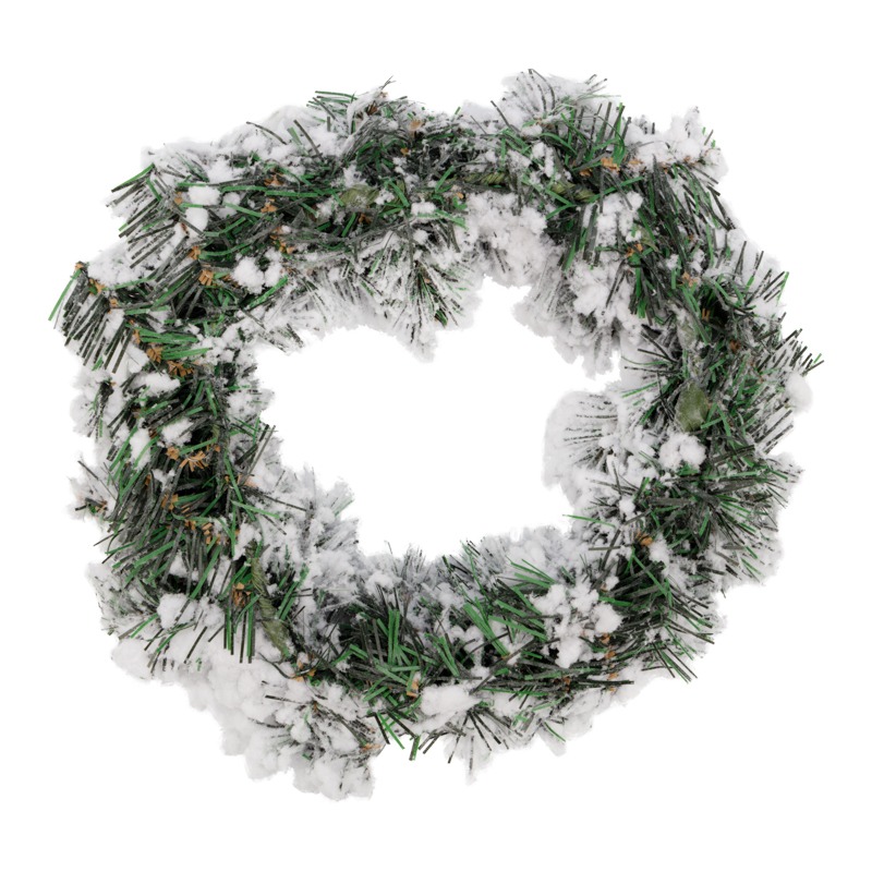 Заснеженный еловый венок диаметром 30 см — традиционное новогоднее украшение, которое поможет создать неповторимое ощущение праздника и зимней сказки. Аккуратные пушистые ветки с мягкой хвоей покрыты имитацией легкого инея. Венок подходит для использования как в помещениях, так и на улице.