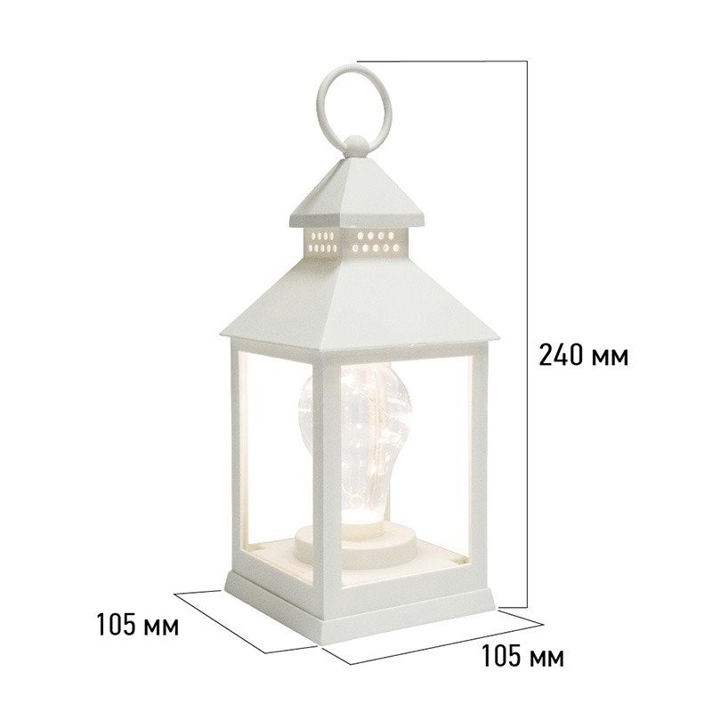 Декоративный фонарь с лампочкой — уникальное интерьерное украшение, с помощью которого можно красиво оформить детскую, гостиную, обеденную зону. В центре композиции находится элемент, имитирующий лампу накаливания. Лампа излучает теплый белый свет, создавая эффект старинного фонарика. Фонарь работает от 3 батареек типа ААА и имеет кнопку ON/OFF. Благодаря необычному дизайну светильник станет прекрасным подарком к любому празднику, который вызовет только положительные эмоции.