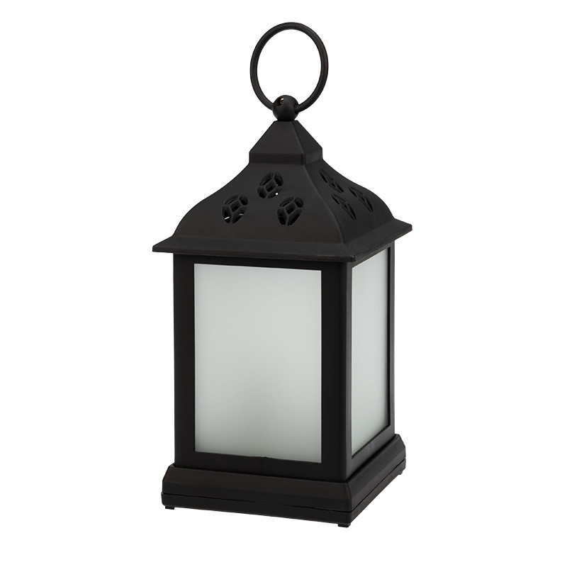 Декоративный фонарь с эффектом пламени свечи в корпусе черного цвета станет прекрасным украшением интерьера, которое гармонично дополнит обстановку, внесет нотку тепла и уюта, подарит ощущение комфорта хозяевам и гостям. В центре композиции находится небольшая пластиковая свеча, которая светится теплым белым светом и имитирует мерцание настоящего пламени. Светодиод получает питание от 3 батареек типа АА. Декоративный фонарь — это замечательный подарок к празднику, который вызовет улыбку и оставит приятные воспоминания.