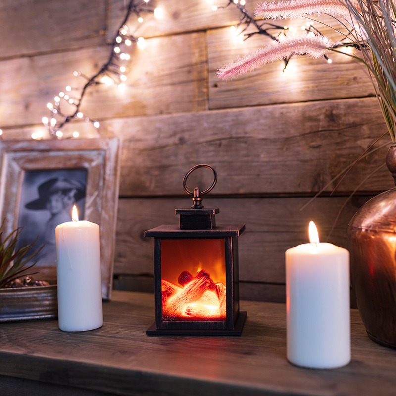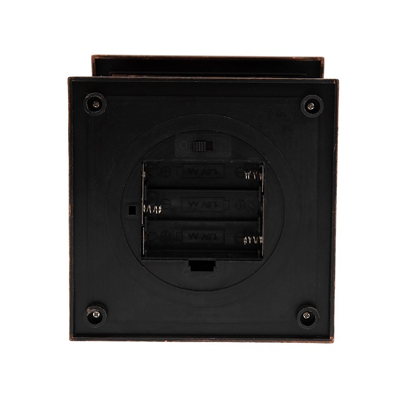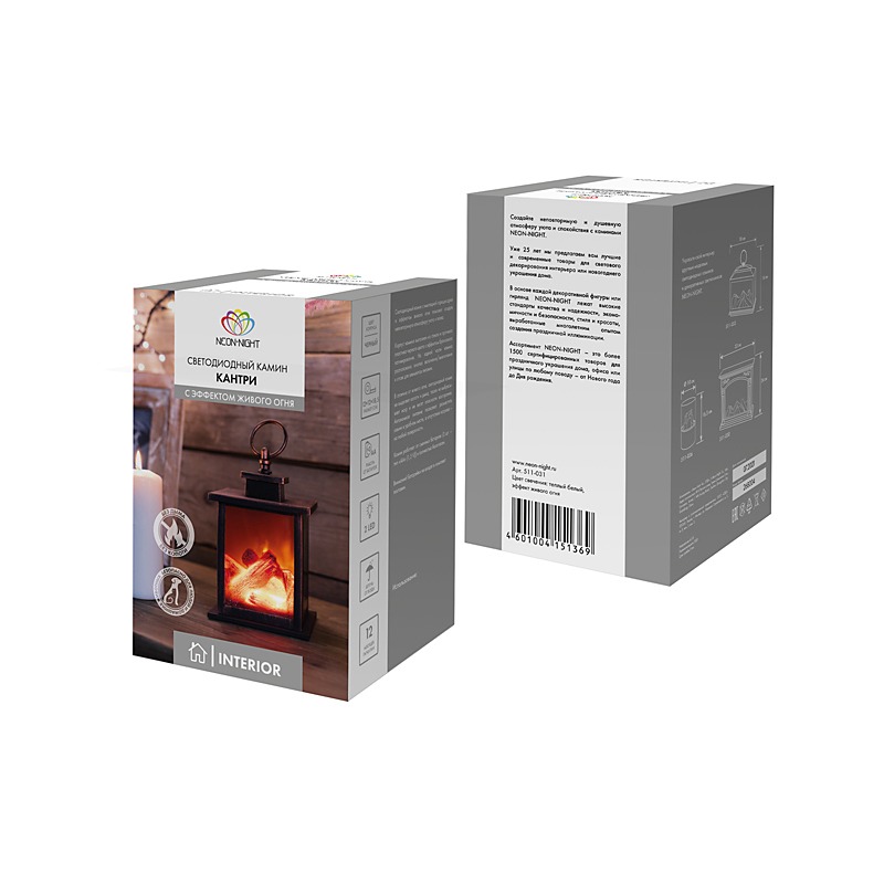 Светодиодный камин «Кантри» с эффектом живого пламени поможет создать неповторимую атмосферу домашнего уюта и тепла. Главное преимущество декора – безопасность использования: изделие не выделяет дым, копоть, не нагревается и не может повредить окружающие предметы. Камин выполнен в виде бронзового фонаря с удобным кольцом, которое позволит подвесить фонарь на крючок в удобном месте. 2 светодиода, управляемые микрочипом, имитируют плавно движущийся огонь и тление поленьев. Интерьерное украшение работает от 3 батареек типа АА, которые размещаются в специальном отсеке в нижней части корпуса.