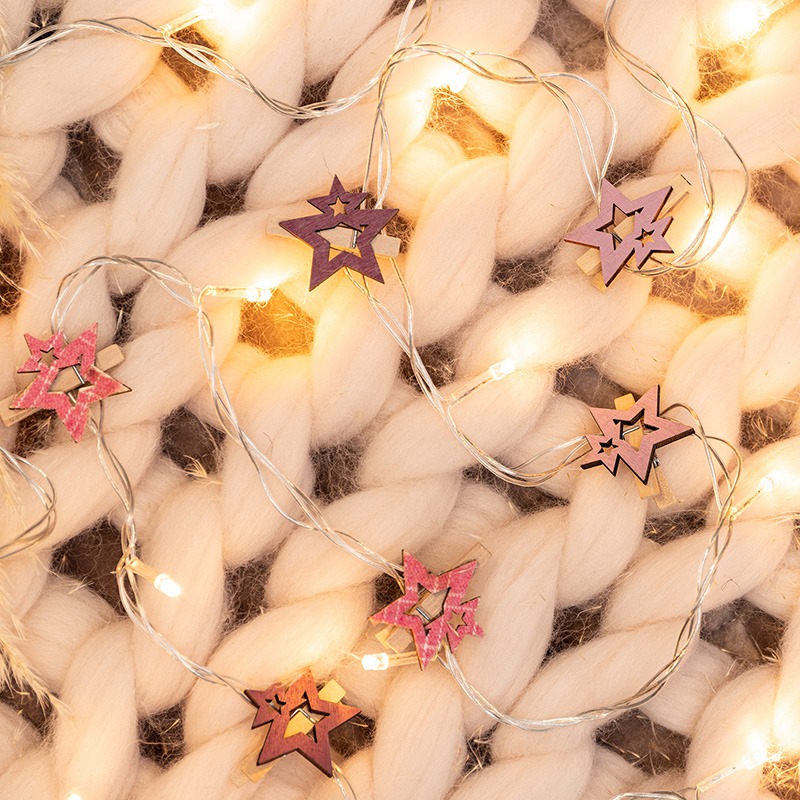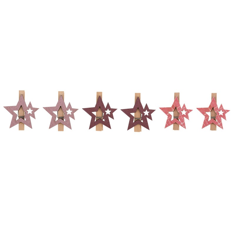 Деревянные прищепки «Звездочки» — это набор из 6 декоративных предметов (размер каждого 4,4x3,9x1,4 cм), выполненных в приятных оттенках розового. Прищепки станут не только интересным украшением интерьера, но и помогут в хозяйстве благодаря своей функциональности. При помощи изделий можно закрепить оконный текстиль в нужном положении, зафиксировать елочную гирлянду, оригинально упаковать подарки, оформить праздничные открытки и многое другое. Прищепки «Звездочки» предоставляют широкий простор для фантазии в области создания уникальных арт-объектов.