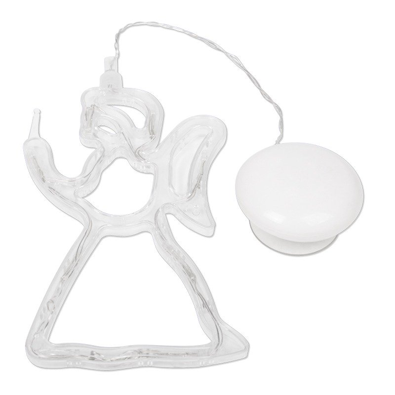 Светодиодная фигура «Ангелок» — современное, безопасное, мобильное интерьерное украшение, которое эффектно украсит любую обстановку, поможет разнообразить привычное окружение и подарит ощущение домашнего уюта. 8 ярких светодиодов питаются от 3 батареек типа ААА, устанавливаемых в отдельный аккумуляторный блок. Диоды излучают теплый белый свет, не нагреваются, не теряют своих свойств в течение всего срока службы. Для прочной фиксации на гладких поверхностях предусмотрена крепкая присоска.