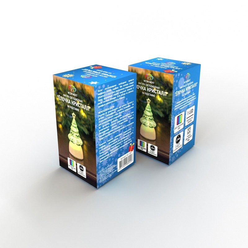 Светодиодная фигурка на подставке «Елочка Кристалл» напоминает великолепные статуи изо льда, которые обычно украшают городские площади, декорированные к Новому году. Миниатюрная фигурка с обработанными гранями, будто созданная руками умелого мастера, эффектно подсвечивается светодиодом RGB — безопасным, экономичным элементом. Диод меняет цвета, плавно переключая 256 оттенков в хаотичном порядке. Игра света в прозрачной фигурке завораживает, заставляя подолгу любоваться световым мини-шоу. Изделие работает от 3 батареек типа LR44.