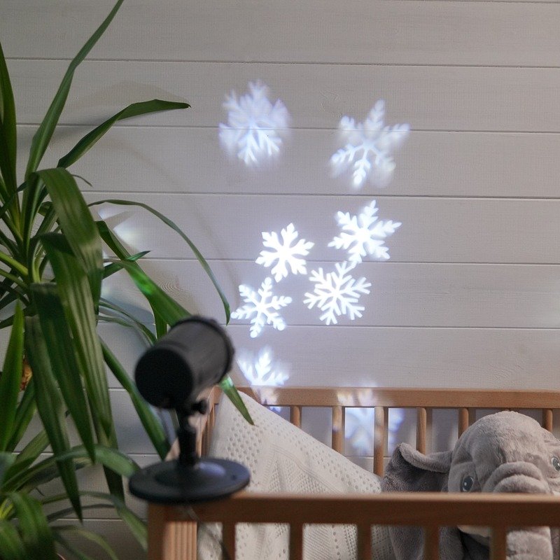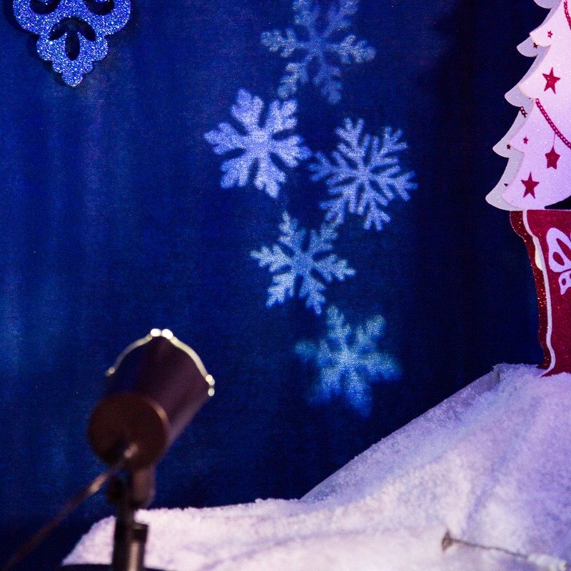 LED-проектор проецирует изображения снежинок на поверхности с расстояния до 15 метров и работает от сети 230 Вольт. Устройство поможет создать праздничную атмосферу и почувствовать приближение новогодних праздников где угодно: на корпоративе, частной вечеринке, семейном ужине. Белые светодиоды экономичны, безопасны и долговечны, а корпус имеет защиту IP44, поэтому проектор рассчитан на длительную работу как дома, так и на улице. Понижающий трансформатор на 14 В делает устройство бесшумным, что дает возможность использовать его в качестве ночника.