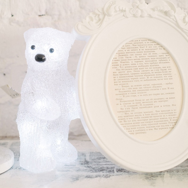 Акриловая светодиодная фигура «Медвежонок» высотой 22 см — интересное решение для оформления интерьера, которое станет ярким акцентом, выгодно подчеркнет особенности дизайна и подарит ощущение уюта. 10 ярких светодиодов излучают белый свет нейтрального оттенка, мягко обрамляя контуры и создавая эффект объема. Корпус выполнен из прочного акрила, особая технология обработки поверхности обеспечивает приятную фактуру, визуально имитирующую плюшевую шерсть животного. Фигура работает от 3 батареек типа АА и полностью безопасна в использовании.