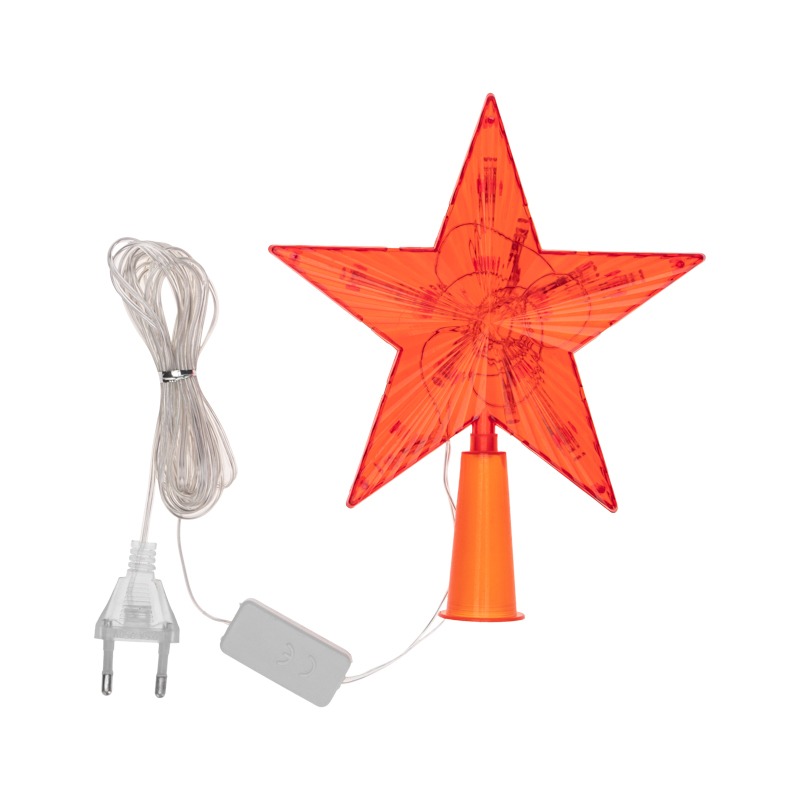 Фигура звезды подсвечивается 10 яркими диодами, которые питаются от сети 230 В. Для подключения в розетку предусмотрен кабель в защитной изоляции из гибкого ПВХ.