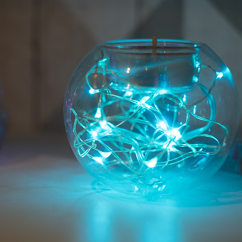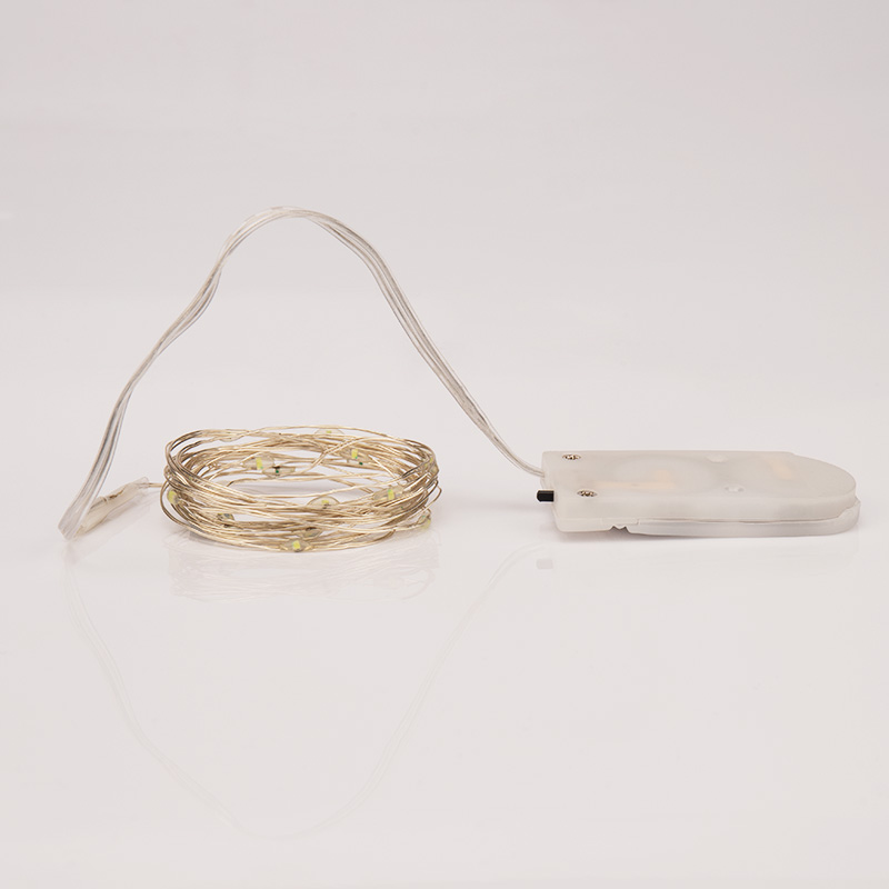 Гирлянда «Роса» длиной 2 метра питается от двух батареек типа CR2032, которые идут в комплекте поставки. Независимость от электросети дает большие возможности в создании уникального декора: изделие подходит для украшения различных интерьерных предметов, композиций и даже букетов из цветов. 20 диодов, расположенных на серебристом проводе светятся голубым. Гирлянда, подобно проволоке, имеет свойство фиксироваться в выбранном положении. Блок с батарейками находится на конце электрокабеля длиной 30 см. Изделие на батарейках, оно безопасно в использовании и подойдет для декора даже в детской комнате.