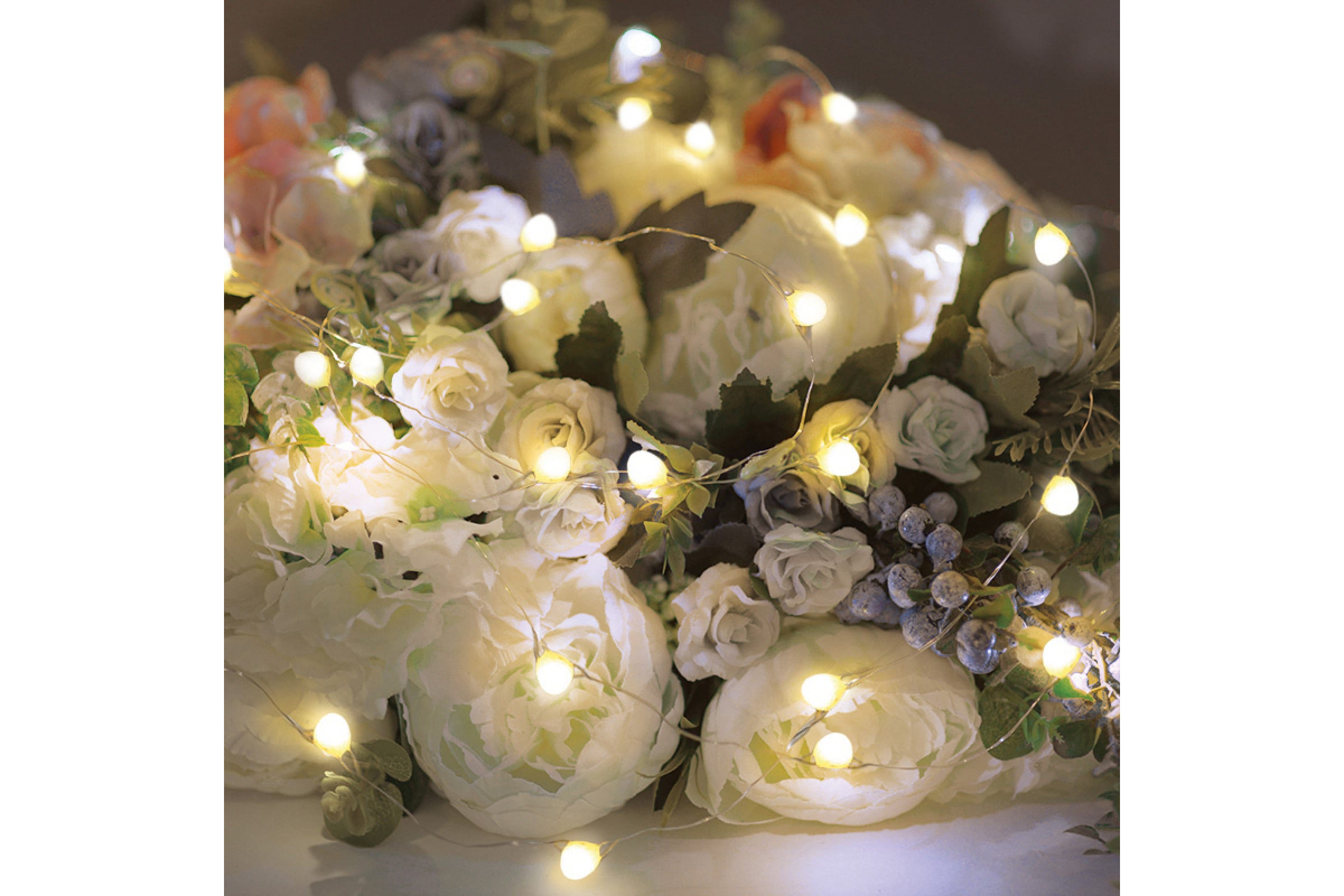 Гирлянда состоит из тонкого провода длиной 2 метра, с расположенными на нем 20 теплыми белыми долговечными светодиодами.