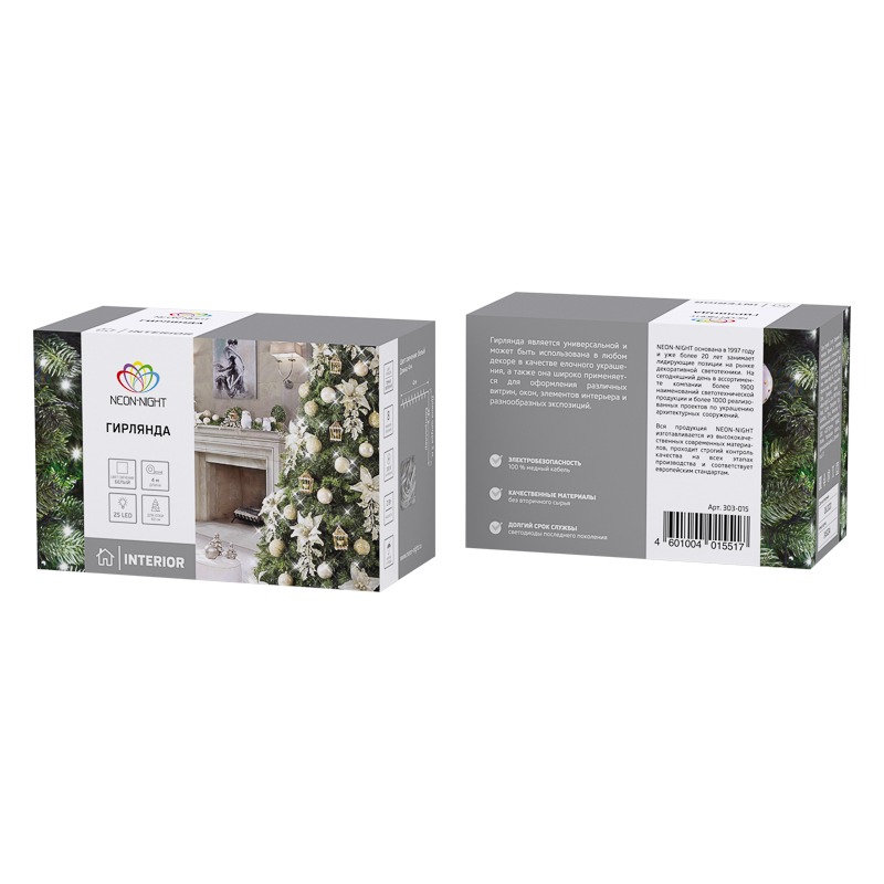 Гирлянда «Твинкл» длиной 4 метра — это классическое решение для украшения новогодней ели. Провод в изоляции из ПВХ темно-зеленого цвета сливается с общим фоном пышной кроны и остается практически незаметным, создавая эффект объемной подсветки. 25 экономичных диодов излучают ровный белый свет. Контроллер с 8 режимами позволяет управлять светодинамикой и выбирать опции по настроению. Современные безопасные диоды не нагреваются, поэтому не могут нанести ожоги. Питающий шнур длиной 3 метра позволяет подключить изделие к сети без удлинителя.