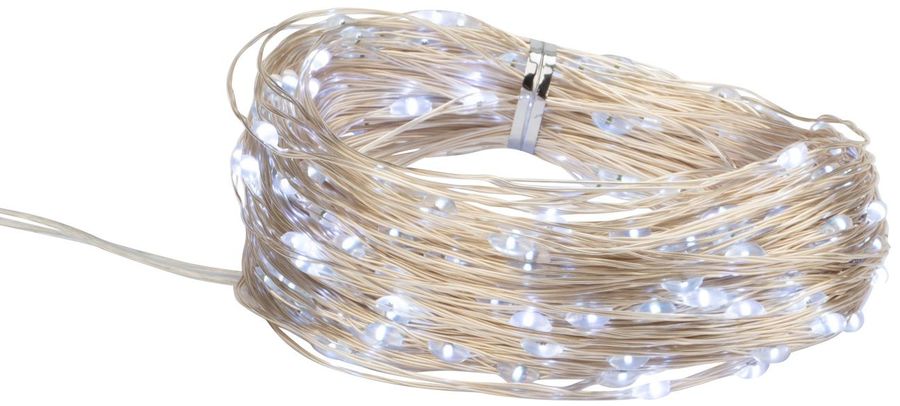 Гирлянда состоит из тонкого провода длиной 30 метров, с расположенными на нем 300 белыми долговечными светодиодами.