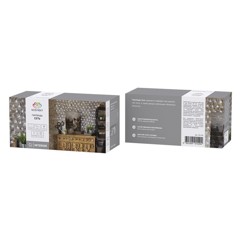 Гирлянда «Сеть» 1,5×1,5 м прекрасно подходит для декора оконных проемов. 150 светодиодов, излучающих ровный белый свет, расположены на одинаковом расстоянии. Воздушная сетка, в основе которой находится серебристый провод с прозрачной оболочкой из ПВХ, можно крепить при помощи крючков на присоске. Кабель длиной 3 метра позволяет подключить гирлянду без дополнительного удлинителя. Диапазон рабочих температур и защита IP20 предполагают использование в сухих отапливаемых помещениях. Контроллер с 8 режимами управляет красивыми динамическими эффектами.