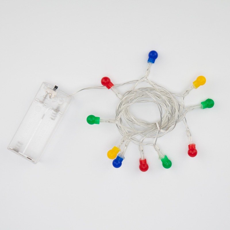 Светодиодная гирлянда «Шарики» длиной 1,5 м — это идеальный вариант для оформления небольших переносных предметов: ваз, скульптур, светильников и даже букетов из цветов. Украшение с 10 светодиодами питается от двух батареек АА, поэтому с легкостью может использоваться там, где недоступна обычная розетка. Шарики расположены на проводе с прозрачной оболочкой из ПВХ. Конструкция имеет защиту стандарта IP20 и подходит для размещения внутри помещений с умеренной влажностью.