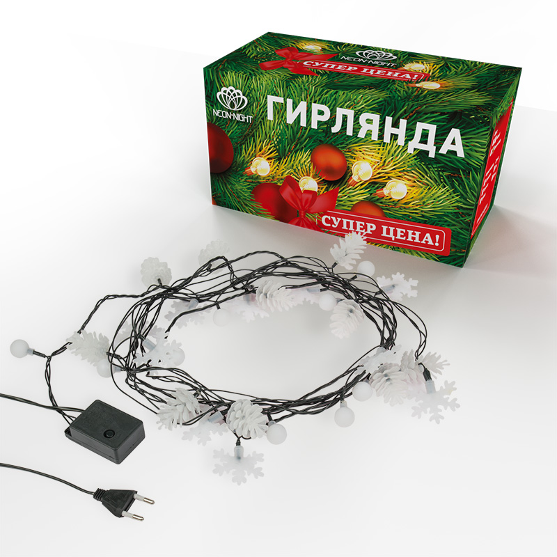 Универсальная светодиодная гирлянда длиной 4,4 метра — это оригинальное решение, меняющее стандартное представление о праздничном украшении. 30 светодиодов, расположенных на проводе с оболочкой из зеленого ПВХ, комплектуются насадками в виде елочек, снежинок и шариков. Разноцветные диоды, управляемые контроллером с 8 режимами, создадут веселое настроение и разнообразят любой интерьер. Гирлянда питается от электросети с напряжением до 230 Вольт.