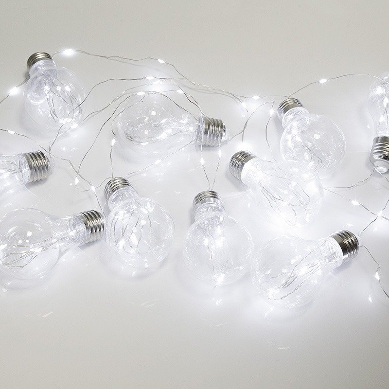Светодиодная гирлянда «Ретро-лампы» длиной 3 метра не требует подключения к стандартной розетке: питается от 3 батареек типа АА, находящихся в отдельном блоке с кнопкой ON/OFF. Независимая конструкция открывает невероятные возможности в сфере светового декора. На тонком гибком проводе расположены искусно выполненные насадки в виде аутентичных ламп накаливания, которые подсвечиваются белыми лучами диодов. Необычный дизайн, оригинальная концепция помогут добиться винтажного эффекта и атмосферы уюта в декоре помещений. Защита IP20 предполагает использование в отапливаемых помещениях с умеренной влажностью.