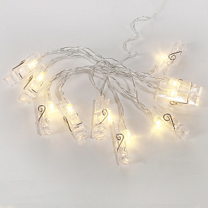 Гирлянда светодиодная Прищепки 10 LED 16 м прозрачный ПВХ теплый белый свет свечения 2 х АА батарейки не в комплекте NEONNIGHT