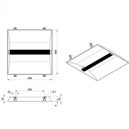 На корпусе предусмотрены крепления для потолка типа Грильято. Крепежные элементы являются частью корпуса.