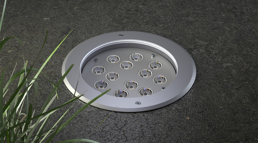 Серия ландшафтных грунтовых светильников цилиндрической формы для подсветки зеленых насаждений, архитектурных форм и фасадов зданий.