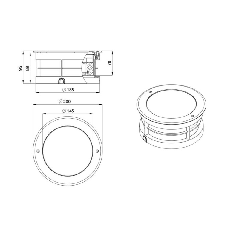 Корпус светильника выполнен из литого под давлением алюминия, имеет декоративный фланец из нержавеющей стали. Герметичность устройства соответствует классу IP68, что предполагает высокий уровень защиты корпуса от проникновения влаги и пыли внутрь конструкции.