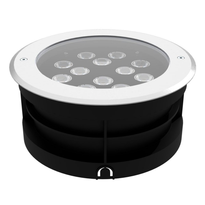 Корпус светильника выполнен из литого под давлением алюминия, имеет декоративный фланец из нержавеющей стали. Герметичность устройства соответствует классу IP68, что предполагает высокий уровень защиты корпуса от проникновения влаги и пыли внутрь конструкции.