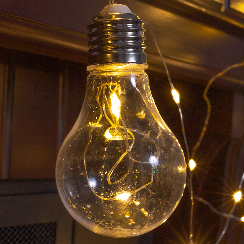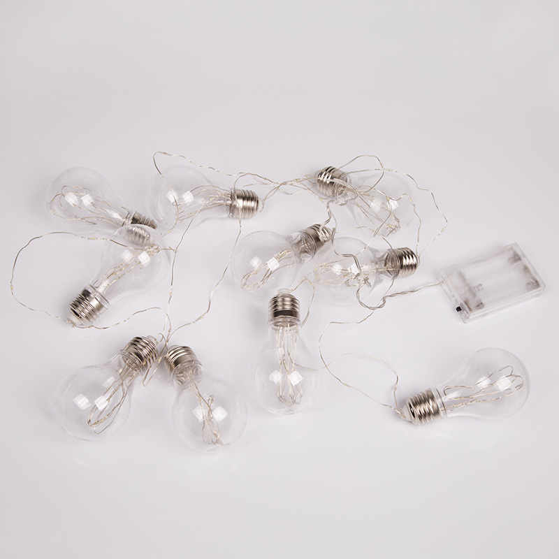 Гирлянда «Ретро-лампы» длиной 3 метра — это оригинальный световой декор, который гармонично украсит интерьер, подчеркнет уникальный вкус и креативный подход к оформлению помещений. На тонком серебристом проводе находятся 100 ярких диодов, излучающих теплый белый свет. 10 насадок, выполненных в виде классических лампочек накаливания, расположены на расстоянии 30 см друг от друга и мягко подсвечиваются диодами изнутри. Гирлянда питается от 3 батареек типа АА и имеет кнопку ON/OFF на батарейном блоке. Изделие рассчитано на использование в интерьере, в том числе и в детских комнатах благодаря абсолютной безопасности.