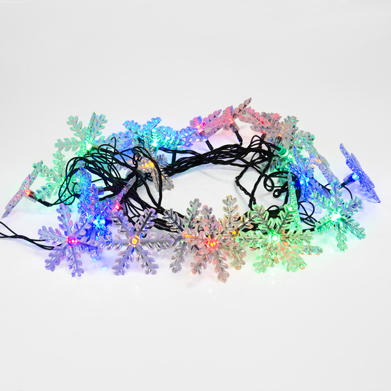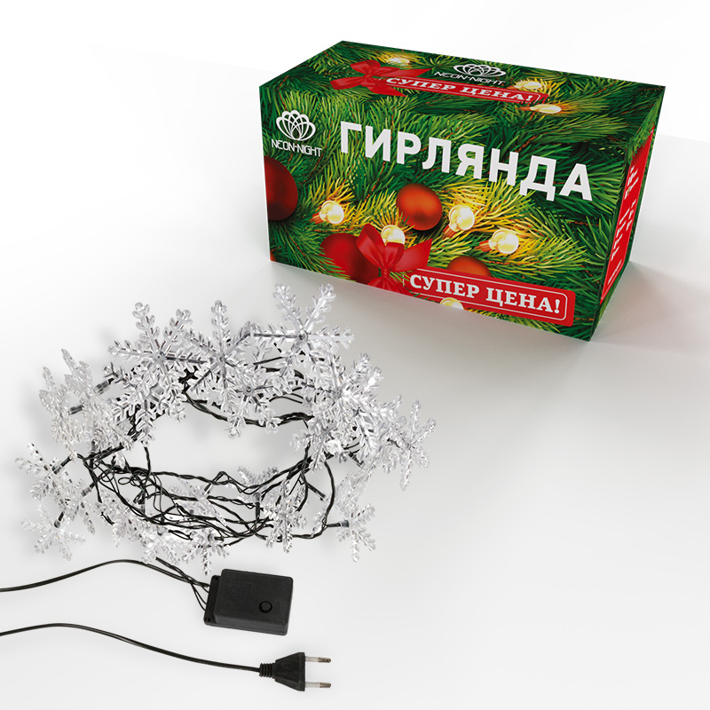 Светодиодная гирлянда «Снежинки» длиной 4,4 метра — идеальное решение для украшения новогодней ели. Прозрачные реалистичные насадки-снежинки ярко подсвечиваются разными цветами. 30 светодиодов расположены по всей длине шнура, скрытого в изоляции из зеленого ПВХ. Гирлянда имеет степень защиты IP20 и предназначена для использования в интерьере и сухих помещениях с умеренной влажностью. Гирлянда питается от электросети с напряжением до 230 Вольт.