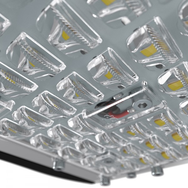 Алюминиевая светодиодная плата изготовлена по SMT-технологии. Значительное количество диодов, равномерно распределённых по большой площади, обеспечивает высокую эффективность светильника.