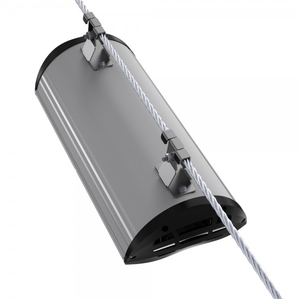 Светильники крепятся на трос-растяжку диаметром 4-12 мм.