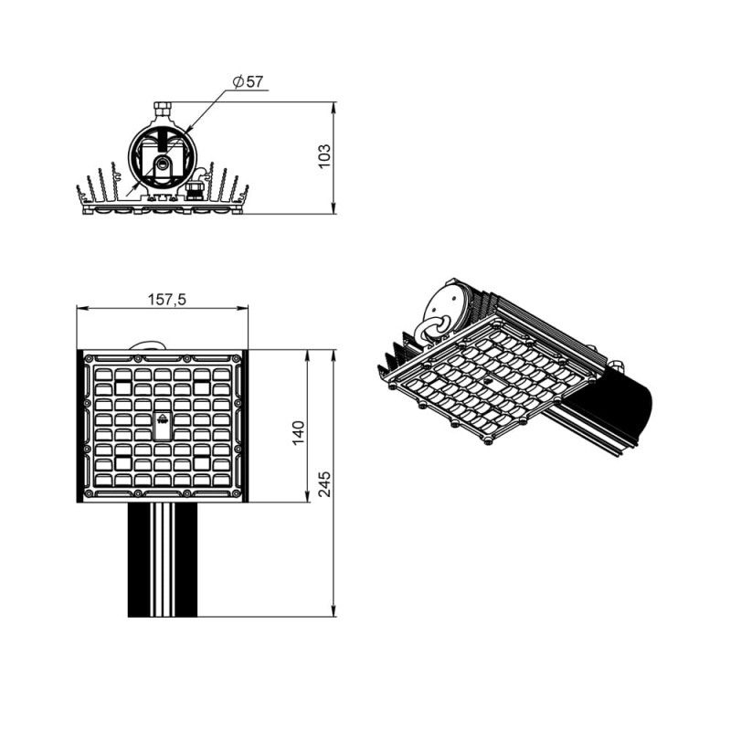 Светильники крепятся на консоль круглого сечения диаметром до 57 мм. Данная серия не имеет возможности регулировки угла наклона светильников.