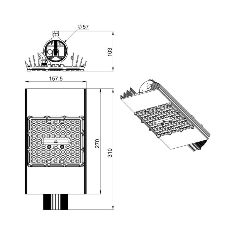 Светильники крепятся на консоль круглого сечения диаметром до 57 мм. Данная серия не имеет возможности регулировки угла наклона светильников.