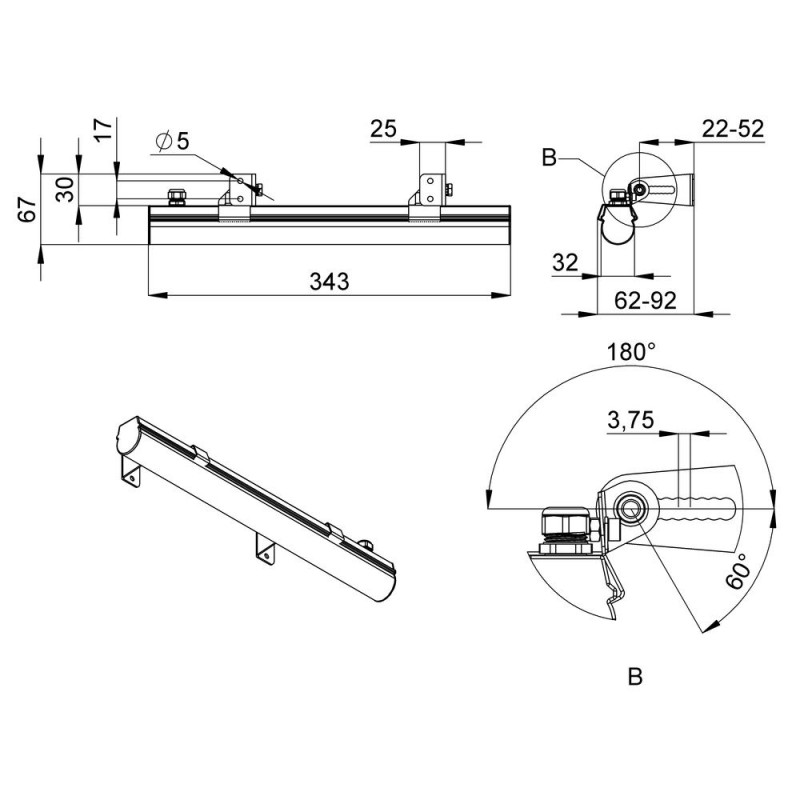 Базовый типоразмер светильника – 1000 мм. Возможно изготовление светильников меньшей длины для выстраивания линий требуемой протяженности.