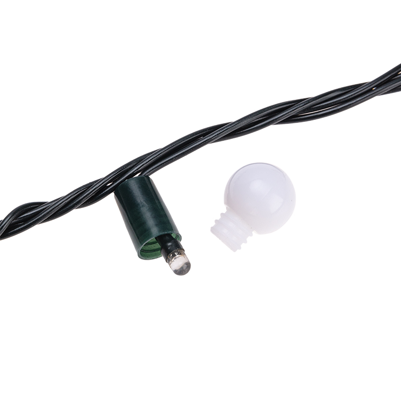 Представляет собой горизонтальный провод, на котором располагаются светодиоды с насадками в виде шариков диаметром 1,5 см. Свечение создается с помощью комбинации двух основных цветов: красного и зеленого или красного и синего. Эти выразительные и насыщенные цвета мигают, придавая окружающему пространству динамичность и яркость.