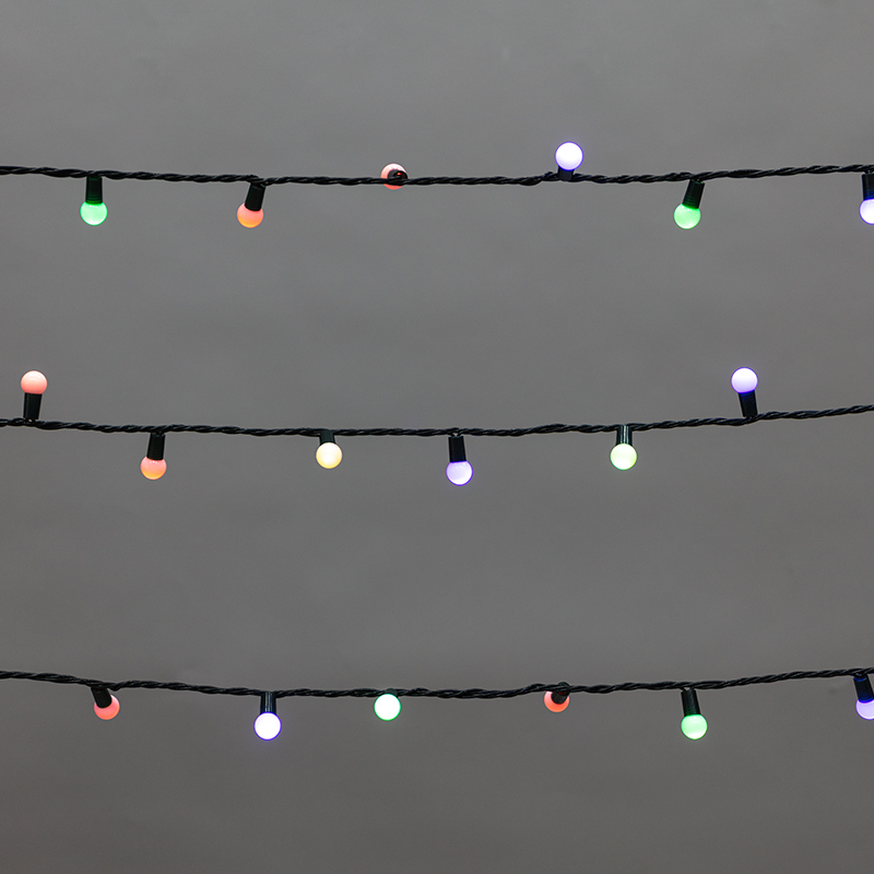 Гирлянда оснащена защитой от пыли и влаги IP44, что позволяет использовать ее как на открытых площадках под навесом, так и внутри помещений.