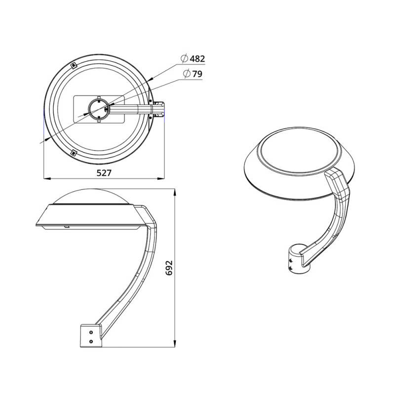 Светильник крепится на вертикальную опору. Стандартный диаметр посадочного отверстия – 79 мм. В комплекте идут крепежные болты.