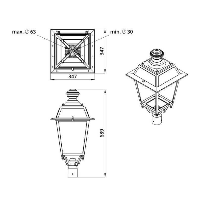 Светильник крепится на вертикальную опору. Стандартный диаметр посадочного отверстия – 63 мм. В комплекте идут крепежные болты.