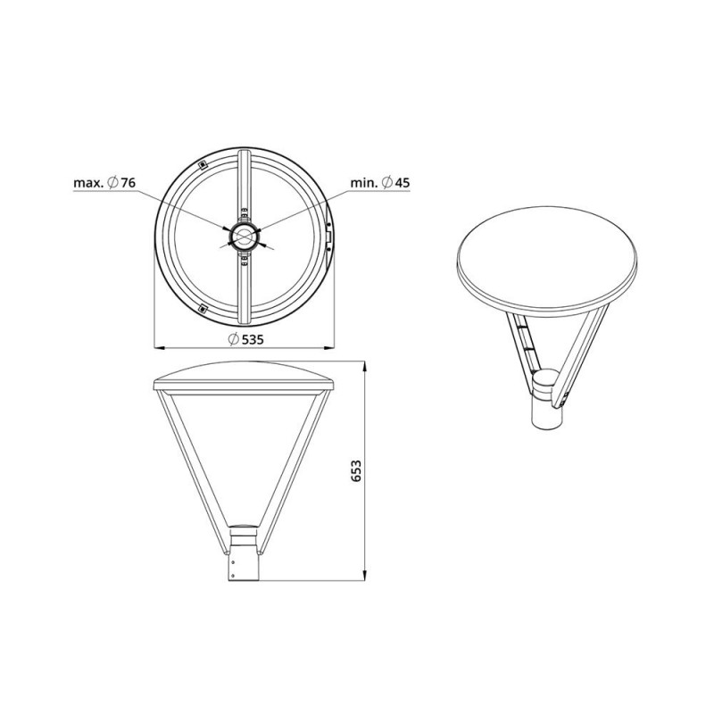 Светильник крепится на вертикальную опору. Стандартный диаметр посадочного отверстия – 77 мм. В комплекте идут крепежные болты.