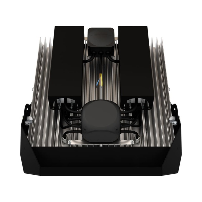 Источник питания наружного исполнения, его металлический корпус залит теплопроводящим компаундом. За счёт этого снижается нагрев светодиодного модуля и самого источника питания, поэтому светильник служит дольше.