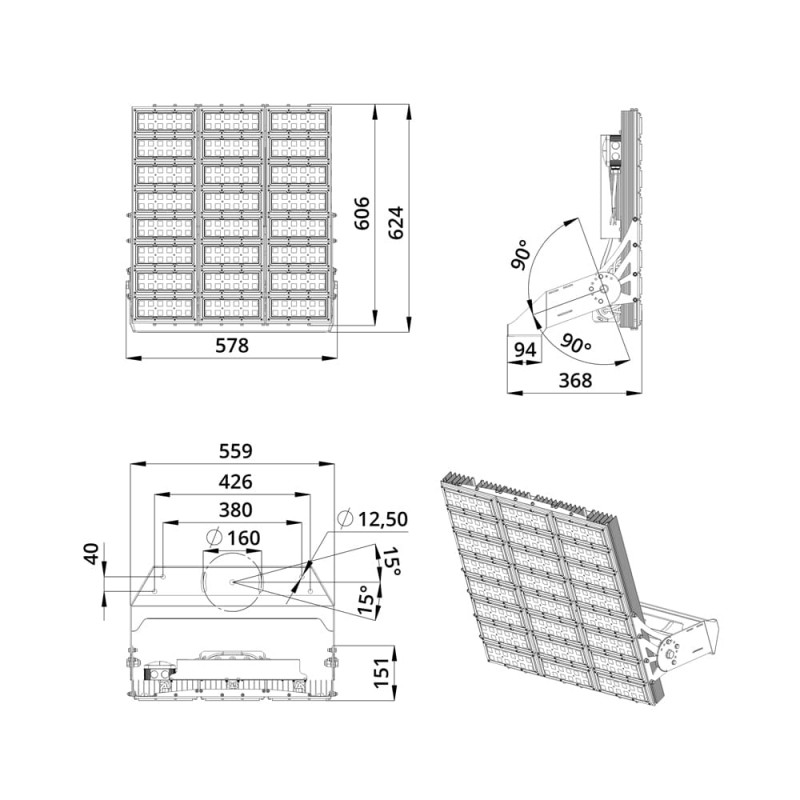 Серия промышленных светодиодных прожекторов для освещения: