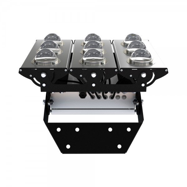Источники питания размещаются в специальном монтажном шкафу, который крепится на корпус светильника. За счёт наружного исполнения источника снижается нагрев светодиодного модуля, и сам светильник служит дольше.