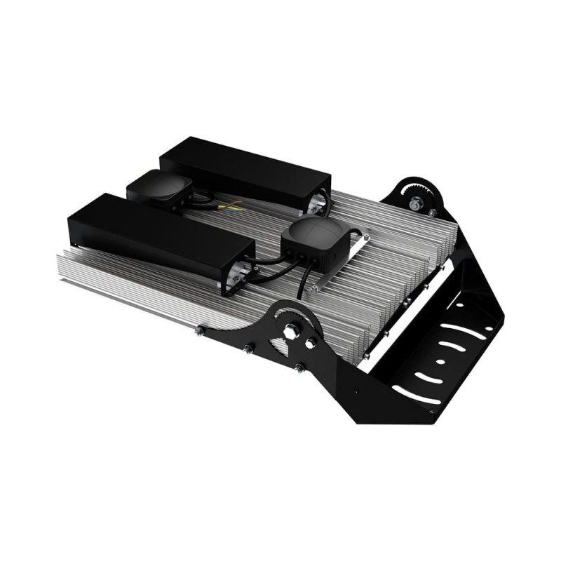 В комплекте идёт кронштейн, который позволяет регулировать угол наклона светильников. Специальные зубцы на кронштейнах дополнительно облегчают регулировку положения прожектора.