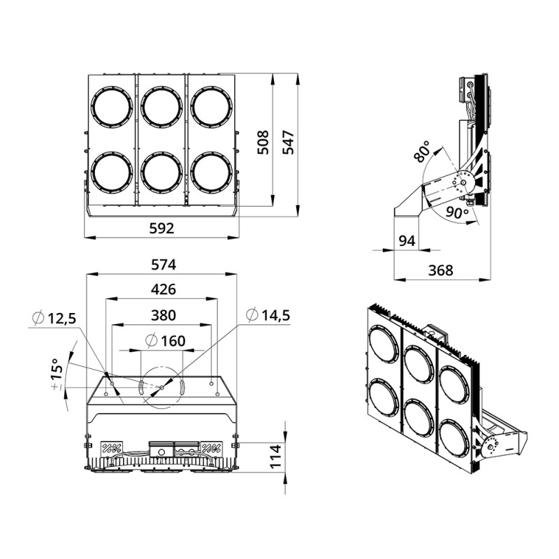 Серия «Плазма D» – это светильники с высокой энергоэффективностью (до 183 лм/Вт) и круглыми линзами. Прожекторы имеют оптимальное соотношение эффективности и цены за люмен, а широкий мощностной ряд позволяет решать самые разные светотехнические задачи. У «Плазм D» есть модификация «Box», в которой источники питания размещаются в монтажном шкафу. Также это исполнение имеет поворотные модули, которые можно ориентировать независимо друг от друга в разных направлениях. Количество модулей варьируется в зависимости от мощности светильника.