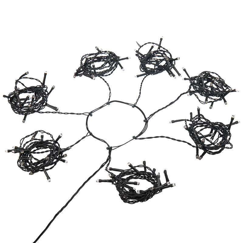 Елочная гирлянда с кольцом и 7 нитями по 1,5 м — это простое и удобное решение для украшения новогодних елей в квартире или доме. Изделие сконструировано таким образом, чтобы пользователи тратили минимум времени на оформление праздничного дерева. Гирлянда выполнена из темно-зеленого провода, сложенного в виде кольца, питающий шнур имеет длину 3 метра. К основанию крепятся 7 нитей со 105 диодами белого свечения. Достаточно просто повесить кольцо на вершину ели, расправить светящиеся элементы — декор готов. Контроллер с 7 динамическими и 1 статичным режимами позволяет менять сценарии в соответствии с настроением.
