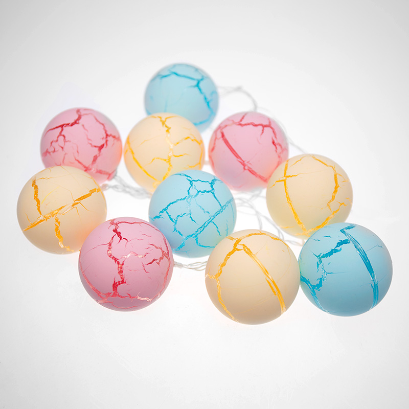 Светодиодная гирлянда «Карамельки» состоит из электрического шнура из прозрачного ПВХ, батарейного блока и 10 пластиковых разноцветных шариков, мягко подсвечиваемых 10 диодами. Поверхность фигурок с фактурой «кралекюр» пропускает яркие лучи, создавая магический эффект объемного свечения. Гирлянда не нуждается в прямом подключении к электросети и питается от двух батареек типа АА, что гарантирует абсолютную безопасность в использовании. Украшение прекрасно подходит для оформления гостиной, спальни, детской комнаты. Гирлянда работает в режиме постоянного свечения.
