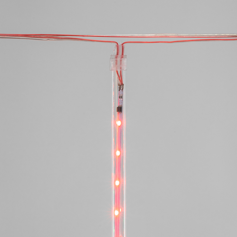 Гирлянда «Тающие сосульки» — светодиодное украшение с оригинальной светодинамикой, имитирующей стекающую по ледяной сосульке каплю. За эффект отвечает встроенный микрочип, который переключает разноцветные диоды на плате. В комплект входят 8 трубок из прозрачного ПВХ длиной 50 см. Гирлянда обладает защитой IP20 и подходит для использования в помещениях с естественной влажностью. Длина питающего шнура — 1,5 метра.
