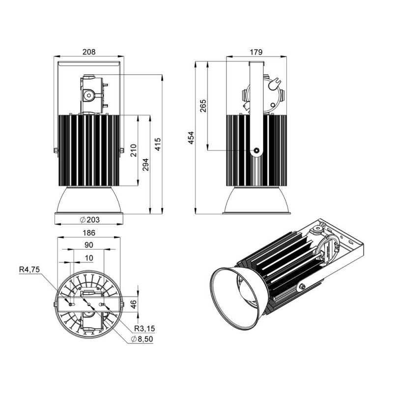 Светильники можно монтировать на рым-болт (базовая комплектация) или кронштейн (опционально).